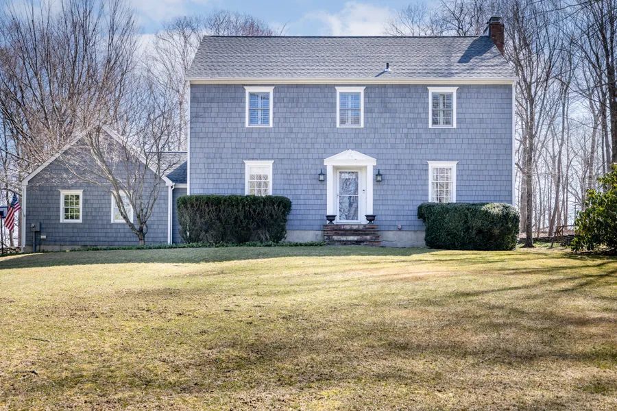 Home Sweet Home is here at 70 Bobby's Court! This beautifully maintained Stonehenge Estates property presents the perfect combination of move-in-ready, convenient location, fun neighborhood, perfect for strolling and great outdoor space. Upon opening the front door, it is apparent that this bright and open Colonial will not disappoint. The main level offers hardwood floors throughout the spacious living room with wood burning fireplace and dining room with molding. The floor plan has a fantastic flow into the white eat-in-kitchen and sunken family room that beckons guests to gather. The kitchen boasts an abundance of cabinets, granite countertops, vaulted ceilings, skylights, island seating and built-in desk. Step out the sliders onto the blue stone patio overlooking the level backyard and stone wall which complements this home's casually elegant lifestyle. A main level private office with built-in Murphy bed makes for a flexible study/fifth bedroom. A powder room, laundry and mudroom complete the main floor. Upstairs are three spacious bedrooms and hallway full bath. The primary bedroom with walk-in closet, frameless shower and double vanity awaits. The fully finished flexible space on the lower level with built-ins, walk-in cedar closet and custom "nook" lends so many possibilities to suit your needs. Two car garage. Newer roof, furnace and hot water tank. Wired for generator and portable generator included. Convenient to shopping, restaurants, top-rated schools, highways, train, town beach and golf.