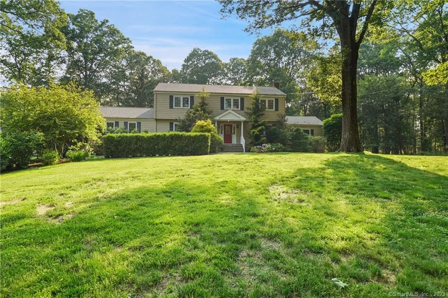 Beautifully located near the end of a cul-de-sac in an established neighborhood of upscale homes, this remodeled & expanded Colonial with a gunite pool and 4 garages is set on 2 acres of level, tranquil property. Set back w/wonderful curb appeal & framed by mature landscaping w/many specimen plantings, this much-loved home is ready for you to move right in & enjoy in time for an incredible summer in Westport. The foyer opens to the front-to-back LR w/fpl which leads to the incredible home office w/cathedral ceiling & built-ins which is an unusually spacious & quiet spot from which to work while enjoying three exposures & dramatic windows overlooking the grounds. The remodeled kitchen w/expansive white cabinetry, pantry space, stainless steel appliances, stone counters, large center island and an open flow to the dining room is sure to be the heart of the home, and opens to the exquisite family room which has a beamed cathedral ceiling and doors leading to the wonderful screened-in porch. The porch will be your favorite place to enjoy relaxing summer days while taking in views of the property and pool. The second level has four bedrooms, each with hardwood floors and spacious closets - including the primary suite w/lrg priv bath & oversized walk-in clst. The finished LL has a rec/play rm, extra office/bonus area, mud rm, workshop & storage. Recent improvements incl new a/c & roof. Auto enthusiasts take note: 4 garage bays on-site, 2 car attached garage & 2 car detached barn.