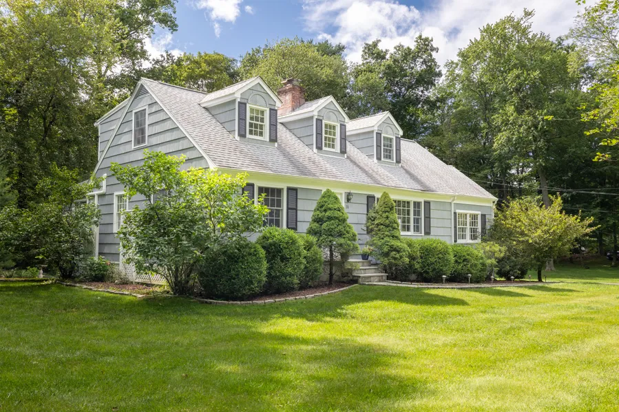 This quintessential New England expanded Cape Cod home offers the perfect blend of modern updates and classic charm. Boasting four bedrooms and two full baths, this home is perfect for those who enjoy having plenty of space. The heart of the home is the beautiful, updated kitchen. Featuring Silestone Quartz countertops, a convenient coffee station, breakfast bar, and stainless steel appliances, this kitchen is a chef's dream. The open layout flows seamlessly into the informal dining room, creating a perfect space for entertaining family and friends. On the first floor you will find a spacious bedroom with a sitting area, ceiling fan and wall to wall carpets over hardwood floors. Sliders lead out to a private deck where you can enjoy your morning coffee or unwind after a long day. Additionally, there is an office and den on the first floor, providing amples space for a home office or study area. Convenience is key with the laundry room and mudroom located off the two car attached garage. No need to worry about storage or organization with this home's abundant closet space and garage. Upstairs the primary bedroom offers a dressing room, walk-in closet, and wall to wall carpets. This private retreat is the perfect place to relax and unwind after a busy day. The basement walks out to a lovley bluestone patio and barbecue area. Expansive level yard for all your outdoor activities.