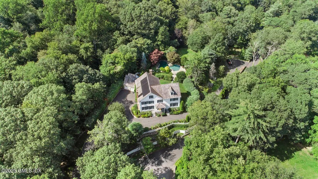 Go inside to a wonderful colonial built by Vincent Vartoli. This home boasts high ceilings, custom moldings, large scaled rooms, a gourmet kitchen open to family room with fireplace, living room with fireplace, office and first floor in-law en-suite bedroom. The second floor primary suite has his and her luxury baths and walk in closets along with 3 other large bedrooms and additional 2 full baths. Unfinished attic has been plumbed to be easily finished. Lower level continues with high ceilings, great bonus playroom and half bath. Pool, pool house with full bath, wood deck, stone walk ways, irrigation, driveway with double entrances, generator, cedar roof, French drains, solar panels and elevator complete this private oasis. OWNER FINANCING AVAIL up to $1MM @ 5% w 20% down.