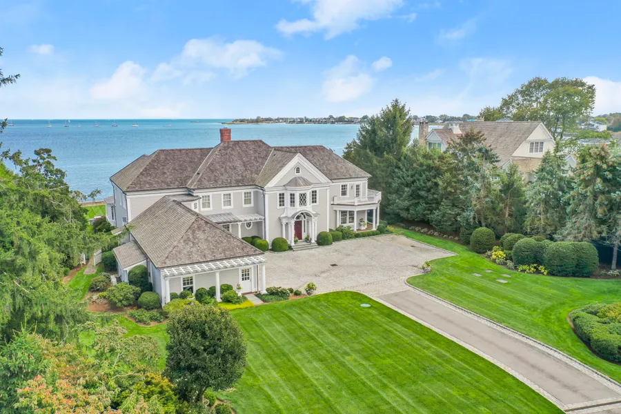 Westport spectacular direct waterfront estate offering unobstructed views of Long Island Sound. Marvel at sunrises over the water and watch wildlife, boating, and aquatic activities from your private piece of paradise. Launch your boat and wave runners from the 20 ft. floating dock and join the fun. Enjoy complete privacy from the meticulously landscaped 1.3 acres with a 168-foot seawall, 80-foot pier, and private beach. A heated pool /spa with expansive granite patios and multiple covered seating and dining areas provide the ultimate setting for waterside entertaining and relaxation. A front-row seat to Westport's fireworks. No expense was spared in creating this 14-room custom manor house. Incredible attention to detail is evident throughout with its fine moldings, heated floors, onyx trimmed Art Deco bar, and glassed walled conservatory with forever views. The charming 2 bedroom cotta...