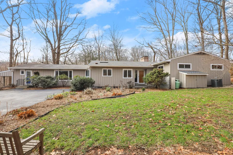 You will love the space in this Mid Century Modern home! Enter and see the living room with cathedral ceiling, beautiful fireplace, walls of glass and gorgeous Pecky Cyprus Wood panels! Catch the view of pretty property (can see pond but its not on this property!). The chef in the family will love the Viking gas commercial stove in the eat in kitchen. Huge family room has hardwood floors, adjacent laundry room with half bath and workshop near the side entry, housing sep heating system for family room. Sit by the fireplace in your primary bedroom with balcony and full bath. Two adjacent bedrooms have built ins handy for books/toys and their own full bath. The downstairs is a great space for guest/ inlaws/teens! Another family room with two fireplaces (one gas insert, one wood), fourth bedroom and full bath! Walk out to back yard and be one with nature. Great location, minutes to town and ...
