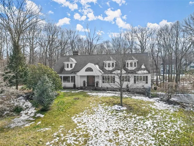 Warm and inviting custom Cape Colonial set on a picturesque, 2 acres in convenient South Wilton. This large home boasts a versatile floor plan with 4 large bedrooms (and possibility of a 5th), home office, walk out lower level that could be finished and 3 car garage. The dramatic two-story foyer greets you as you enter the home, with easy flow to the generously sized Living & Dining rooms -- perfect for entertaining family and friends. Custom, craftsman features in this home include the beautiful, beveled glass pocket doors that frame the dining room and a custom carved mantel adorns the gas fireplace in living room. Large eat-in Kitchen opens to family room with custom stone fireplace, wet bar with beverage cooler. The conservatory is a meditative spot to enjoy the nature that surrounds the back yard. The wide, first floor hallway leads to the Office, Main level BR suite, extra closets, laundry & Bedroom w/ hall bath. The upper level offers a generously sized Primary Bedroom suite w/ sitting area and two closets. A large bonus/rec room on the second floor could be transformed into a 5th bedroom with room for an additional private bathroom. Many newer mechanicals and a 14kw Generac generator complete this home. The flat yard features many mature plantings and plenty of room to play and relax. Conveniently located near both Wilton and New Canaan town centers and the popular Lake Club down the road offers, swimming, paddle and tennis. A wonderful place to call home.