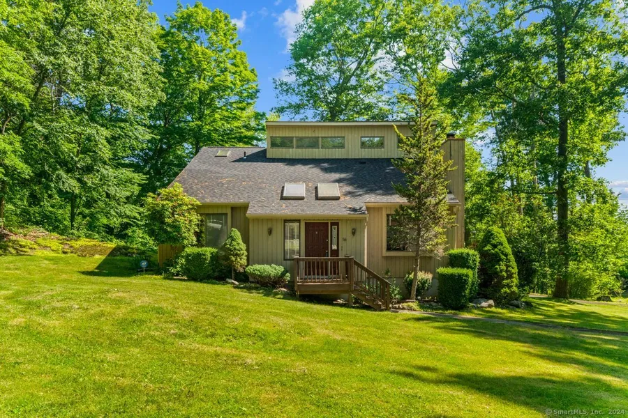 At the end of a cul de sac, in a private setting, you will find this architecturally designed contemporary residence ready for new buyers! New kitchen with butler pantry and laundry room 2023, new water heater / pressure tank 2021, new roof, skylights and gutters 2019. Enter through a sunroom/foyer with skylight to the main floor with vaulted ceilings, beautiful hardwood floors and cozy fireplace. There is a main floor bedroom or den/office if you choose with sliders to a nice sized deck and adjacent full bath. Up a few stairs is a huge finished bonus room with hardwood floors and storage. Upstairs you will find the primary bedroom with full bath and WIC as well as two more bedrooms and full bath. The attached garage enters right into the kitchen, perfect after shopping. Excellent westside location for easy access to I84, shopping and fine dining as well as access to I684, Westchester co...