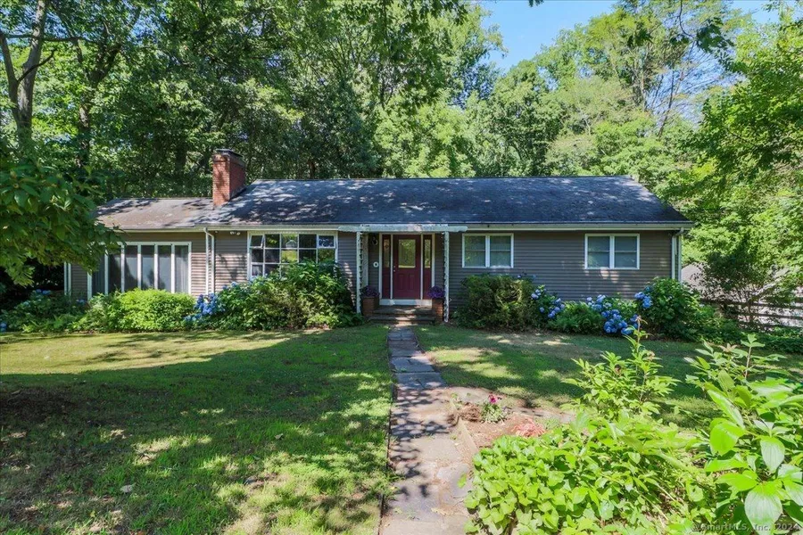 74 Poplar Drive is a 4 bedroom 2.5 bath 2 level ranch with an in-law nestled in an ideal neighborhood. Situated close to Huntington Center and abutting 30 acres of land locked conservation land identified as OS 93. This home is versatile and offers walk-out access from both levels. The first floor boasts 3 good size bedrooms, a bath and a half, living room with fireplace and an eat in kitchen with plenty of granite counter space for entertaining. The first floor has hardwood floors throughout and a family room with exposed brick and beams that can be closed off from the main house for quiet enjoyment. The family room leads to a Trex deck accessing the front yard's tranquility and backyard's entertainment. The backyard is an oasis for all: tree house, 2 sheds, and a unique "party room" which is enclosed and equipped with wi-fi, wet bar and fireplace allowing you to entertain outside in all weather. The backyard chess board doubles as a basket ball court. The yard offers an area for volleyball which doubles as an ice-skating rink in the winter with the included kit, making this the backyard for all seasons. T The lower level in-law ground level access means no more stairs and includes a private bedroom, kitchenette, laundry and sitting room with another wood burning stove. The 3rd garage is ideal for the in-law, car buff or contractor. This garage has provisions for radiant floor heat. Wood from the property was used to make furniture and the kitchen cabinets.
