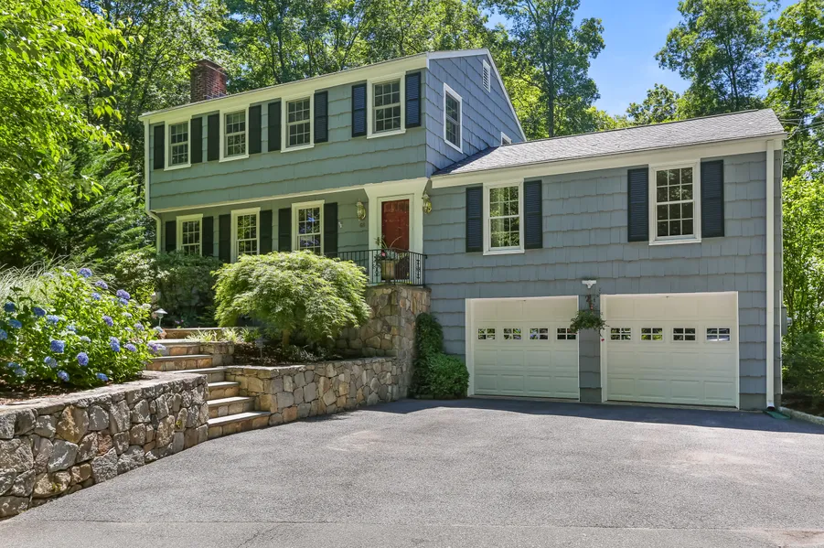 Nestled at the end of a serene cul-de-sac in Wilton, this meticulously maintained 4-bedroom, 2-full bathroom Colonial is set on 2 acres of professionally landscaped property. This home combines privacy, elegance & convenience, making it the perfect sanctuary for modern living. Step inside to an open floor plan that boasts great flow & generously sized rooms, ideal for both living & entertaining. The home features gleaming H/W flooring throughout & interior has been freshly repainted, creating a bright & inviting atmosphere. The main floor includes a cozy living room w/ pocket doors & a gas FP that seamlessly transitions into the formal dining room, highlighted by a charming bay window. Updated eat-in kitchen w/high end appliances & a breakfast bar & dining area is perfect for casual meals & gatherings. A large family room is drenched in natural light from multiple sets of glass sliders that open to an oversized wraparound deck, ideal for hosting friends & family. Also on main floor are a BR & updated full bath & a large den/office w/built-ins & H/W floors beneath wall-to-wall carpeting. The second floor features a spacious primary BR w/WIC, two more BR's, & updated 2nd full bath. Partially finished LL w/newer wall to wall carpet is possible playroom or second family room. Newer Roof (2012), Newer Pressure Tank (2017), Brand New Washer & Dryer, Belgian block lined driveway, Generator, newer windows, Exterior painted (2018), 2 car attached garage & plenty of storage space.