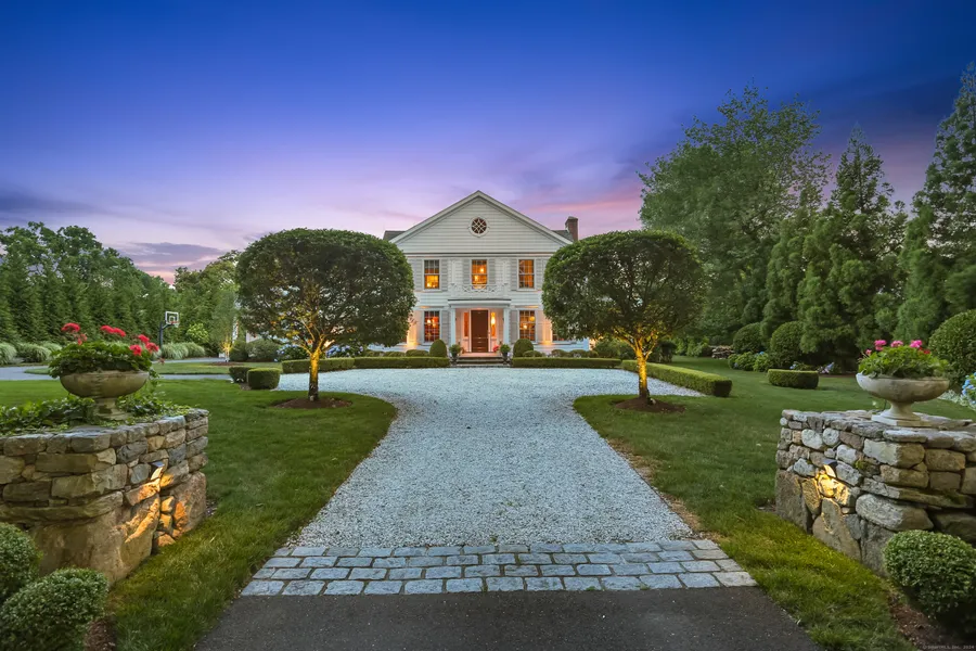 This very special Georgian colonial is like new and boasts 5 spacious bedrooms, 3 ensuite plus 2 more full baths. The open floor plan allows a perfect flow from the kitchen to the dining area, to the living room to the patio and beyond. The chef's kitchen is the heart of the home and has a marble-topped center island, Wolf range, twin Subzero refrigerator and freezer, additional Subzero drawer icemaker and fridge. A sunny, window-lined open dining area leads to a large living room with fireplace. Adjacent to the kitchen, is a wet bar, sink, marble countertops, extra dishwasher and wine fridge with plenty of storage for glassware. A sitting room/study, library, office and custom mudroom are also located on the first floor. An open, tri-level center staircase leads to the second floor with a luxe primary bedroom suite which includes a private balcony overlooking the spacious, level and pro...