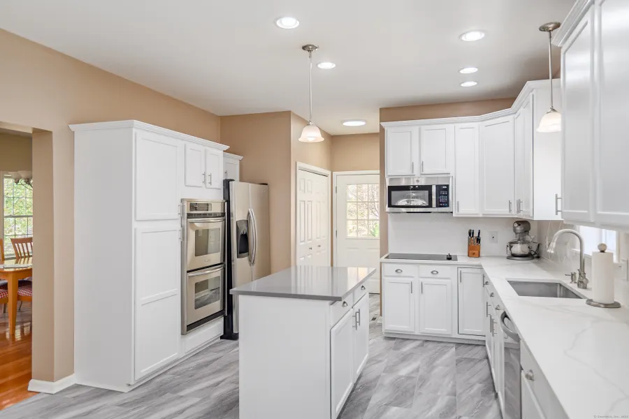 This lovely move-in-ready 4 bedroom colonial is nestled between Candlewood Lake and Squantz Pond with seasonal views of the lake and a private backyard oasis that will delight with waterfall, pond, deck, patios and fire pit. The spacious two story front entry foyer welcomes you and is flanked by the formal dining and living rooms with hardwood floors. The white kitchen features quartz counters, luxury vinyl floor, tile backsplash, stainless appliances, dining area, sliders to deck and private yard, and opens to the family room with gas fireplace. Off the kitchen is the laundry room, half bath and second entry from the side yard. The upper level hosts the primary bedroom with ceiling fan and full bath with Jacuzzi tub and shower, three large bedrooms and full hall bath with shower/tub combination. The lower level is perfect for in-home office, rec room and full bath (perfect for in-law, e...
