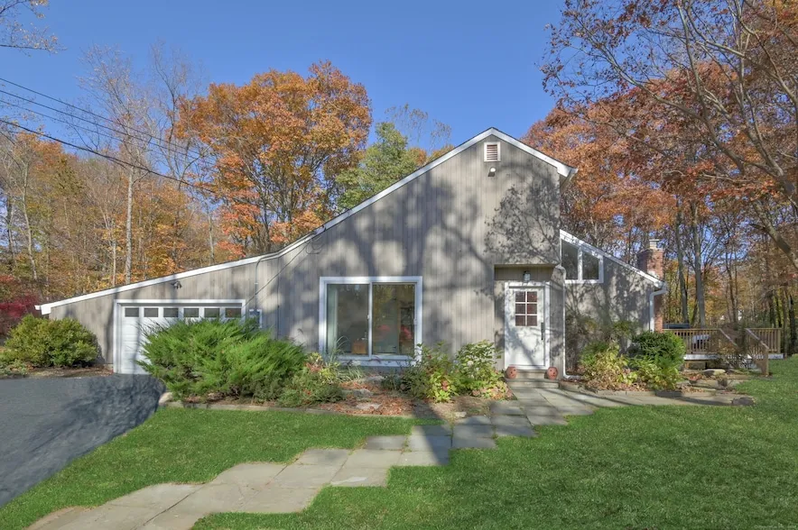 California Dreaming! Super Hip 4-bedroom, 3-bathroom Contemporary sited on 1.23 level acres in desirable South Ridgefield. Step into a spacious living area with soaring ceilings, large windows, and abundance of natural light. Updated Chef's Kitchen boasts stainless steel appliances, granite countertops, large island with seating plus a Breakfast Nook with buil-tin cabinetry, perfect for entertaining. The spacious Great Room features hardwood floors, vaulted ceiling, skylights and wood-burning stove. Enjoy a luxurious main floor Primary Suite featuring a spa-like bathroom with dual vanities, a soaking tub, and a walk-in shower. This tranquil retreat with ample closet space and a private balcony overlooking lush landscapes. Additional bedrooms with ample closet space and flexibility for home offices or guest rooms. Each bathroom is updated with modern finishes. A professionally landscaped, expansive yard features 2 wonderful outdoor living spaces - spacious decking on both West and East perspectives - ideal for hosting or enjoying quiet evenings under the stars. Sited in one of Ridgefield's most desirable neighborhoods and is move-in ready! Easy access to top-rated schools, parks, and minutes to the charming downtown area with boutique shops, fabulous dining, top shelf live entertainment, art galleries cultural attractions, making Ridgefield CT's 1st Cultural District. Approx. 1 HR to NYC via Katonah Train Station. Inquire about Assumable Mortgage Details.