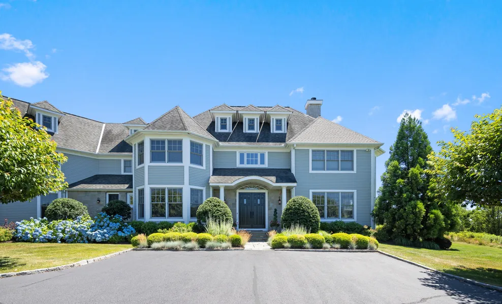 This stunning Nantucket-style Colonial, is perfectly situated on 2.4 private acres at the end of a prime cul-de-sac. Wake up to sunrise vistas of Long Island Sound to the East and end your day with dramatic sunsets over the Connecticut ridge line to the West. Inside, it's all about light, luxury & livability. The classic main level enjoys 9' ceilings and offers the perfect floor plan for today's living. The heart of the home is the new chef's kitchen with huge island and large eat in area with French doors to the patio. Relax in the octagonal, sun-flooded family room featuring a fireplace for the ultimate cozy experience. Entertain guests in the living room, serve drinks from the wet-bar and feast with friends in the chic dining room. Work from home in the dedicated office with a front-row view of the expansive flat yard with room for a pool. An elegant staircase leads upstairs where the...