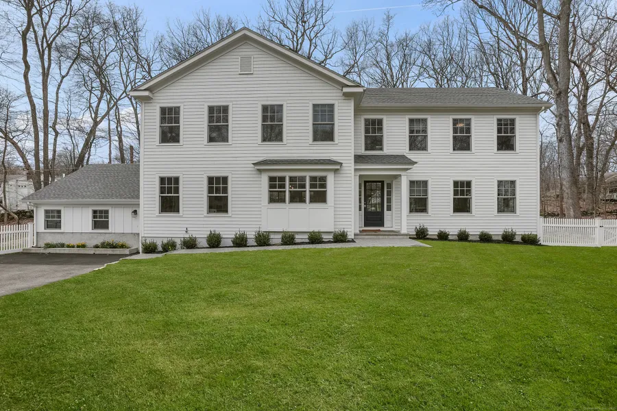 Nestled at the end of a quiet cul-de-sac, this beautiful custom-built home is a short proximity to Westport's Bedford Middle School and Staples High School. The exterior is designed with durability and style, featuring Marvin windows and doors, Hardie siding, and a charcoal-toned, lifetime-warrantied asphalt shingle roof. Upon entering, you'll be welcomed by a spacious foyer that opens to a stunning open-concept design. The expansive living room boasts a gas fireplace and sliding doors that lead to a covered stone patio. The living room flows into the kitchen and dining area, creating an ideal space for both relaxation and entertaining. The kitchen with a large island, wine cooler, quartzite countertops, and high-end Thermador stainless steel appliances is a chef's dream. A few steps down from the main living area, you'll find a cozy family room, a second entrance, a mudroom, and a stora...