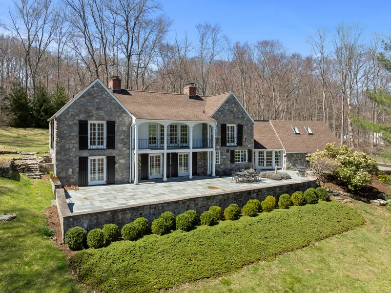 Some homes are built. This 1931 Frazier Forman Peters masterpiece was sculpted from the earth. A true work of art, this hand-cut fieldstone residence is seamlessly embedded into its hillside perch, embodying strength, grace, and timeless craftsmanship. Architectural drama and elegance fill the interiors: soaring ceilings, a striking double staircase atrium, a stacked living and dining room, and five fireplaces infuse the home with character. French doors, four en-suite bedrooms, and a sweeping front terrace invite light and flow throughout. Restored with reverence, the home captures the romance of a bygone era, while offering every modern comfort. Set on over two acres, the property offers unmatched privacy and panoramic views. Tiered stone terraces and lush landscaping elevate the natural setting, creating a storybook retreat just minutes from downtown New Canaan. This is more than a ho...