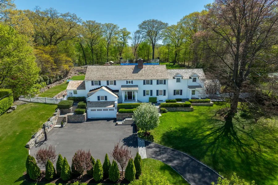 Exceptional opportunity to own a turnkey Colonial on 1.5 park-like acres just moments from town. Throughout the light-filled interiors, refined formal details blend seamlessly with modern upgrades throughout. A chef's kitchen opens to a family room with fireplace. A fabulous recent addition offers a spacious office, family room, bedroom suite, and mudroom. French doors lead to an expansive flagstone terrace with outdoor kitchen, fireplace, and pergola. New pool and padel court create an incomparable backdrop for enjoying life's special moments amid spectacular surroundings.