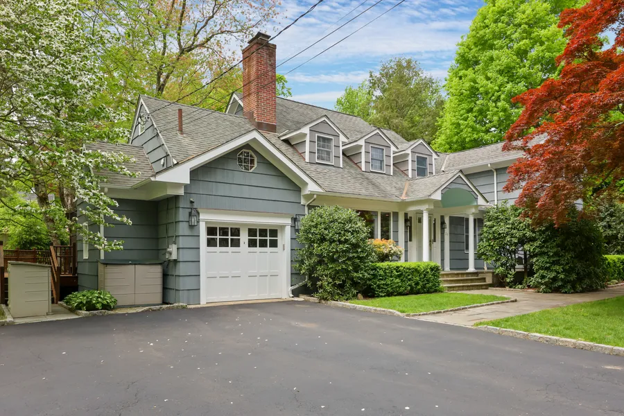Tucked away on a desirable cul-de-sac just minutes from downtown New Canaan, this beautifully maintained 4-bedroom, 3.5-bath Cape offers space, style, and flexibility in a prime location. The home is move-in ready with hardwood floors throughout, an open, light-filled floor plan, and inviting spaces ideal for both everyday living and entertaining. A two-story entry welcomes you in, with the spacious living room with built-ins and fireplace to the left, and a casual dining area to the right-both thoughtfully designed for comfort and flow. At the heart of the home is the updated chef's kitchen, featuring high-end appliances, granite countertops, custom cabinetry, a wine fridge, bay window, and eat-in area. The kitchen opens to the sun-drenched family room with cathedral ceilings, fireplace, and French doors leading to a generous 26' x 25' deck-perfect for gatherings and celebrations. Upstairs, the large primary suite offers two walk-in closets and a newly renovated bathroom with double vanity, jacuzzi tub, and separate shower. Two additional bedrooms share a full bath. An office area with vaulted ceilings and built-ins, plus a beautifully-designed laundry room complete the second floor. A legal accessory apartment with its own entrance provides endless flexibility - ideal for in-laws, au-pair, guests, a home office or rental income. It includes a full kitchen with granite counters and a 48" Wolf range with 6 burners and grill, living room, vaulted-ceiling bedroom with skylight, full bath and separate HVAC. Additional highlights include a one-car attached garage, Belgian block-lined driveway, outdoor shower, natural gas heat and city water. Convenient to the Merritt Parkway and walking distance to the Metro North stations, Waveny Park, the YMCA, award-winning schools, and all the dining, shopping, and charm of downtown New Canaan.