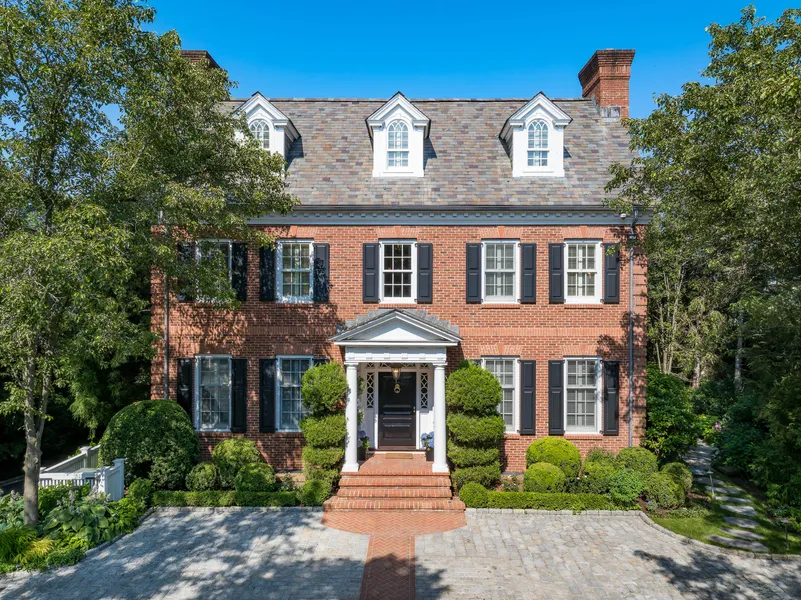 Experience extraordinary living in this sophisticated, estate-style majestic brick townhouse with slate roof - a truly unique custom-built home showcasing timeless elegance & impeccable architectural detail across 4 expansive levels. A gracious gated entrance opens to a charming cobblestone courtyard, setting the stage for an unmatched living experience. Inside, you'll find beautifully appointed formal living and dining rooms, both featuring elegant fireplaces & rich millwork. The heart of the home is the open-concept chef's kitchen, with a spacious breakfast area & inviting family room with coffered ceiling & fireplace. Walk out to the professionally landscaped brick patio, where you'll enjoy a built-in BBQ, outdoor fireplace, & covered seating areas-perfect for year-round entertaining. The luxurious primary suite is a private retreat, offering a cozy sitting area, fireplace, dual dressing rooms, & 2 spa-inspired ensuite bathrooms. 4 additional bedrooms-each with their own ensuite bath & walk-in closet-ensure ultimate comfort & privacy for family & guests. The home also features 3 dedicated home offices, ideal for today's flexible lifestyle, & an elevator. The impressive lower level is designed for entertaining & relaxation, featuring a fireplace, coffered ceiling, bar, wine cellar, billiards, & well-appointed exercise room. Professionally landscaped with mature trees & perennial gardens, offers exceptional privacy & natural beauty. An architectural masterpiece.