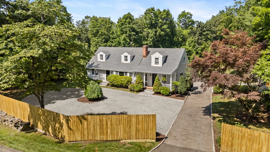 This beautifully renovated home blends timeless sophistication with modern comfort. Inside, the sun-filled main level features rich hardwood floors and refined details throughout. At its heart, a gourmet kitchen impresses with a 2" quartz island, custom cabinetry, premium Thermador appliances, and seamless access to an expansive deck, ideal for effortless indoor-outdoor living. The main-level primary suite is a true retreat, with vaulted ceilings, an ensuite bath, and a custom walk-in closet. A second bedroom/home office, a living room with fireplace, a cozy den, and a full bath complete the main level. Upstairs, you'll find two spacious bedrooms and a beautifully updated bathroom. The fifth bedroom, which can be used as an office, gym/yoga room, or playroom, completes the second floor. The lower level offers a private entrance, garage access, and flexible use as an in-law suite, au pair quarters, guest space, playroom, or media room. Thoughtfully designed, it features a bedroom, full bath, living area, wet bar, refrigerator, and dedicated washer/dryer. Exterior updates include a new roof, fencing, and fresh paint and trim. Outdoors, enjoy multiple entertaining areas including a landscaped yard, stone patio, and oversized deck, perfect for gatherings or quiet evenings. Minutes from all schools, Waveny Park, Metro North train, Merritt Parkway, and a vibrant town center, this home offers luxury, location, and livability in perfect balance.
