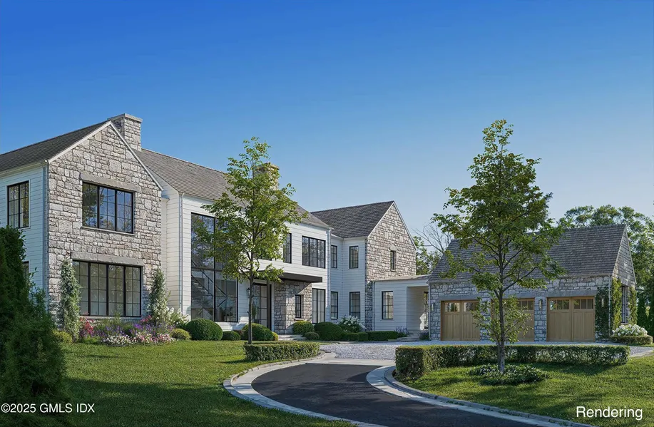 Exceptional commanding luxury estate under development in prime mid country location. The 2.39 acre gated & elevated site includes a 13,326 SF main house with 6 bedrooms / 8.3 bathrooms across 4 levels of custom crafted living space with indoor parking for 7 cars - plus an outfitted 800 SF luxury pool house with vaulted ceilings, heated floors, stone fireplace & full bathroom overlooking a large terrace, 50 ft. pool with integrated spa & sundeck plus a sprawling lawn area with sunken fire pit & Bocce court. Designed by the SOHO Group, this striking transitional home with soaring ceilings & tremendous light is perfectly layered in clapboard, hand chiseled fieldstone & oversize glass. A 3-stop elevator plus an amenity-filled lower level complete the offering. Est. completion date: Dec. 2025