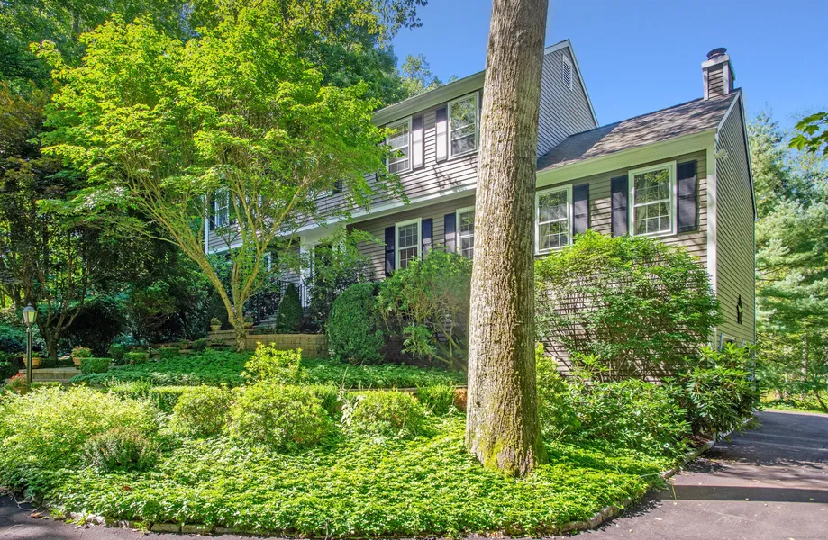 Welcome Home to 3 Great Pond Lane in Redding, a beautiful residence with a storybook approach framed by manicured gardens and a stone walkway leading to the welcoming front porch. Inside, hardwood floors, cozy carpet, and an abundance of natural light flow throughout the functional floor plan. The main level features a gracious foyer, a living room with a fireplace, a dining room, and a well-appointed kitchen equipped with stainless steel appliances, granite countertops, generous cabinetry, and a pantry. The adjoining great room impresses with its soaring cathedral ceiling, central fireplace, built-in bookshelves, and windows that overlook the serene rear yard and the woods beyond. A laundry room and powder room complete the level. Upstairs, the spacious primary suite features a walk-in closet and renovated full bathroom, while three additional bedrooms share a beautifully updated hall bathroom. The finished lower level offers flexible rec space, and the home is complete with a two-car garage, expansive deck, manicured lawn, and perennial gardens. Located in sought-after West Redding--just 10 minutes to Ridgefield's vibrant town center and with easy commuting routes down County and to NYC-you'll also enjoy Redding's charming small-town feel, miles of hiking trails, and rich cultural offerings at the historic Mark Twain Library and nearby arts venues. Welcome Home!