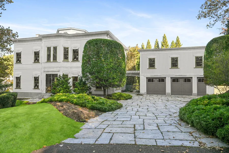 Exceptional design and the finest craftsmanship defines this pristine, all-ensuite 6-bedroom home on one of central Greenwich's highly coveted streets. Soaring ceilings, white oak wood flooring, a gourmet kitchen, all Waterworks bathrooms, solid Mahogany windows, and bespoke European materials encompass the home. With a smart flow and endless light, the first floor is captivating offering a front-to-back layout, seamlessly extending to a generous deck, pool & manicured grounds. A primary suite plus 4-ensuite family bedrooms make up the 2nd floor. The lower level features a bedroom and bath, playroom and gym. Above the garage, you'll find another spacious room of the finest quality, ideal for an office or gym. In-town location. Close to schools, train to NYC and Greenwich Ave.