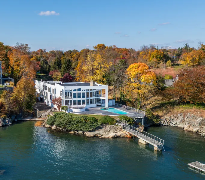 Dramatic views of Long Island Sound extend from this spectacular 1.50-acre property with 185 ft of direct water frontage, an 80-ft dock, a sandy boat launch and a 528 sq. ft. antique cottage. Walls of glass in the current 5-bedroom residence open to a spectacular deck with pool and panoramic views. Once part of the 43-acre Edgar Marston estate, the property includes c.1885 Queen Anne-style cottage with sleeping loft, kitchenette, and full bath -the only remaining structure from one of Greenwich's Great Estates. Tremendous potential to build new 10,584 sq. ft. house offering unparalleled waterfront living. Close proximity to Byram Park with a public pool, beach, marina and boat launch for Greenwich residents. Easy access to downtown Greenwich as well as Manhattan.