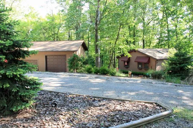 (LISTING WITHDRAWN FROM MARKET) Set on a small and secluded cul-de-sac in Hide-A-Way Hills Club...getaway gateway to the famous Hocking Hills Region for 51 years and counting! This special property includes three wooded and neatly-tended lots, plus RV-sized garage w/built-ins & workspace to spare, and an added & windowed front room that invites in all seasons. There's also a spacious side deck, along w/separate hot tub deck plus lower level deck. Lovely landscaping completes the outdoor picture, along with canvas awnings and outdoor lighting. The home's interior features cathedral & vaulted ceilings w/upscale fans & fixtures, recessed lighting & 4 skylights. An efficient premium corner woodstove helps keep things cozy, and wood laminate flooring flows in to a generously-sized eat-in area plus kitchen w/custom tiled counters & backsplash. The bedrooms feature truly oversized lighted closets w/upscale built-in organizers, and the custom-tiled bath features wrought-iron design lighting & double-sized walk-in shower. HAH members enjoy boating & fishing lakes, beach & pool, golf & tennis, lodge & restaurant w/craft brewery, playground & picnic shelters, ATV trails & stables, shooting range & airstrip, 24/7 security, and more!