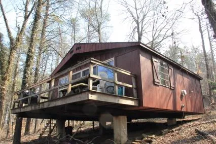 Just a walk along the woods, or a golf car ride, to the lodge, pool, and tennis courts! And a wide and inviting deck opening up off the bright and open great room, with updates from floor to central cathedral ceiling. Discover this hideaway haven tucked among the trees, with plenty of parking for various types of vehiclesgolf carts and ATVs included, of course. Enjoy perfect your new perfect perch to relax amidst the singing of the birds, lemonade afternoons, fall color escapes, and winter wonderlands. And when the weather does turn chilly, no reason to leave...newer vented gas heaters will keep you and yours comfy and cozy. Warm wood-look laminate flooring flows from great room through the rear bedrooms. You'll also appreciate much more "news" that includes windows, electric, roof (2007), and woodsy exterior stain. "Updated & Buttoned-Up" are describe the overall appeal of this resort...
