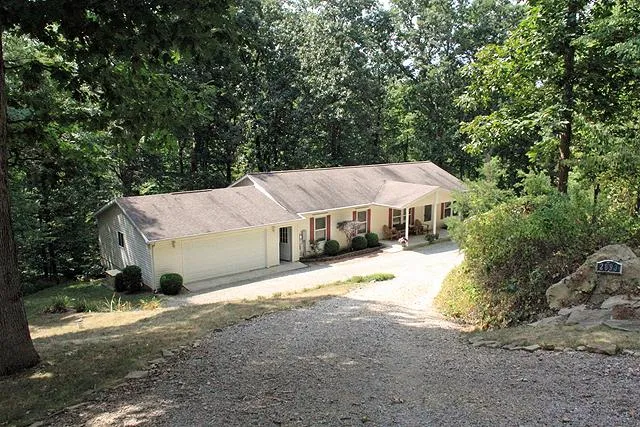 *SOLD - April 2016* Year-round home in The HillsHide-A-Way Hills, a gateway to The Hocking Hills since 1961! Spacious resort ranch with 2+ garage, upscale curb appeal plus plenty of extra parking, double-entry driveway, lovely large wooded lot w/cleared play/recreation space. Solid modular construction with 2x6 walls & poured foundation with walkout lower, bright and airy design & flow with 4-season sun porch opening to secluded treetop deck, master suite w/huge walk-in & bath w/garden tub. Automatic transfer backup power generator, new duct work & piping. Built-ins, breakfast bar, vaulted ceilings, laundry & mud room, ceramic tile flooring, upgraded fixtures, cooks-delight kitchen w/pantry cabinet, pull-outs & lots of light & counter space. Lots more to love, resort lifestyle included!