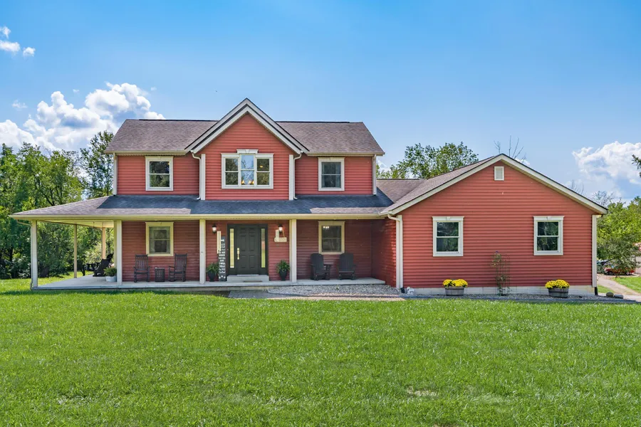 Sprawling two-story farm house style awaits you, with a spacious and inviting wrap around porch. Inside you will find five bedrooms and three full baths. First floor laundry with half bath and owner's suite with walk in closet. Kitchen is open to the dining room and living room with a deck for entertaining. Also an office or additional bedroom on the first floor. The full walkout finished basement has a bedroom, full bath and rec room for additional entertaining. Plenty of storage with the 30 X 40 pole building that has electric and water. A miniature playhouse that stays. Two acres are invisible fence. All this with a stream, sitting on 4.5 acres of peaceful BLISS!