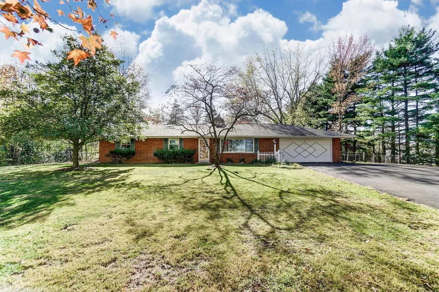 Beautiful 3 acre wooded lot with fenced pastures all brick ranch home, 3 bedrooms with hardwood floors, 1.5 baths. 4th bedroom converted to office, radiant ceiling heat in the living room & all bedrooms, 2 sided fireplace separates living rm & dining rm, updated kitchen, huge full basement partially finished, screened back porch, 2 car attached garage. Property also offers 2 out buildings one is 40x36 and 32x 24 both with electric & water and is currently being used as a mini horse farm. Some updates to include roof, furnace/heat pump, new driveway, carpet, fridge, stove, dishwasher, digital hot water tank, gutters, septic upgraded to code with clean outs, sump pump.