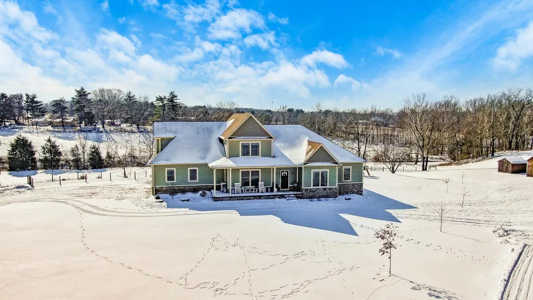 Luxury estate on 42+ acres of scenic farm land. The 2-story residence has 5 bdrms and 4 full bathrooms with nearly 5,000 sqft of finished living space on 3 levels. The entry level boasts a sprawling owner's suite with custom walk-in shower, a 2-story fam room off the kitchen with stone fireplace, a cook's kitchen with gleaming gray subway tile backsplash, an office, 2 full bathrooms, and a laundry room with a doozy of a doggie shower. The upper level has 3 more bdrms, a spacious loft, and a full roomy bathroom. The lower level has been beautifully finished with vinyl plank flooring and includes bdrm #5, full bathroom #4, and a small kitchen in the huge open rec room. Other highlights include a restored barn with shale roof, new metal building, and fenced pasture. Bloom-Carroll Schools