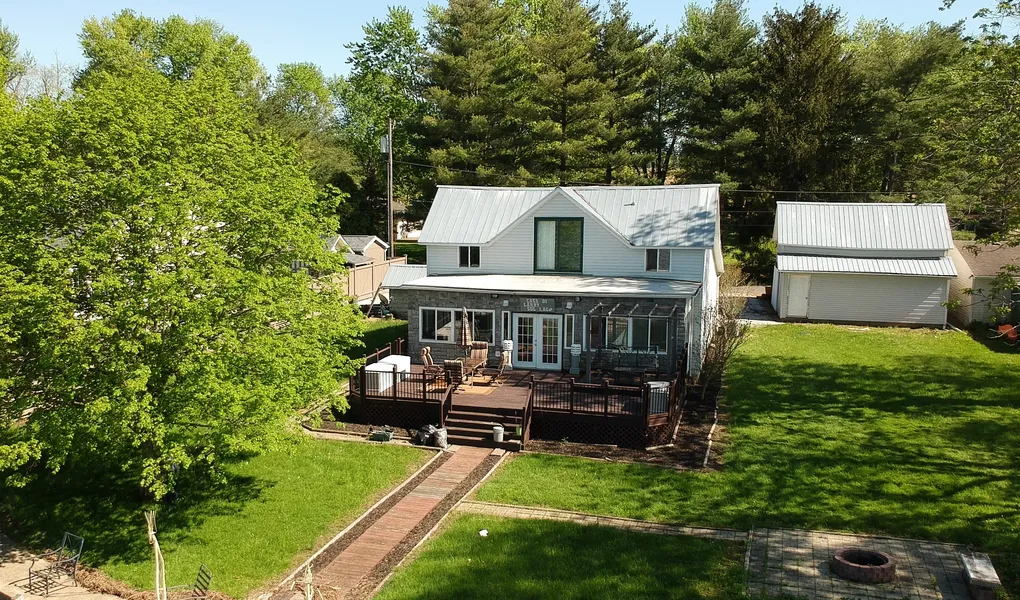 Property to be sold at public auction online and in-person on June 7 at 11a. Double-lot, quarter of an acre property boasting more than 100 feet of Buckeye Lake frontage with incredible, uninterrupted views from the massive deck and large, lush lawn. The ample garage / barn is perfect for storing your boat and water toys on-site, and the charming 4 bedroom historical cottage has a rare open floor plan, providing views of the water from nearly every room. Kitchen newly updated with tile and granite. Freshly painted navy floors contrast beautifully with crisp white walls. Central air. Private boat slip and dock (needs repair). Move-in ready for the 2022 summer season! Sold as-is and subject to owner confirmation or prior sale.