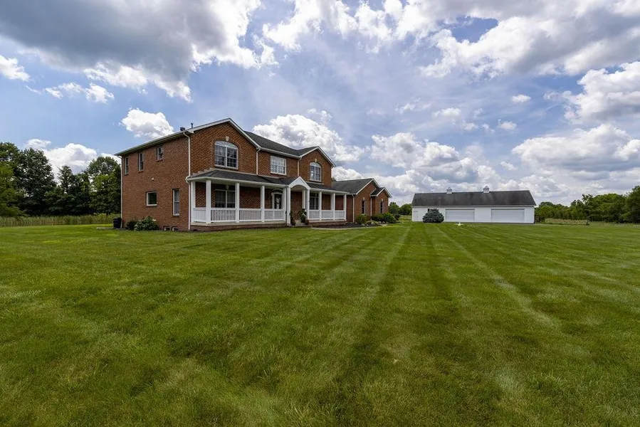 Breathtaking ALL BRICK Custom Built HOME situated on 18 PRIVATE Acres. FF Primary Suite w/private bath & walk-in custom closet! 2nd Flr has 4 LARGE bedrooms & 2 FULL Baths! The roomy kitchen has 42'' cabinets, granite counters, center island & walk-in pantry that is open to the dining area, sunroom & great room w/fireplace. FLL w/full bath, 6th BEDROOM PLUS rec room, 2 additional rooms & unfinished storage. Hardwood floor & new lighting throughout. Oversized 3-car attached garage; 4-car detached BARN. Wonderful outdoor spaces to enjoy nature year-round. Entertain on the covered porch/patio by the Heated Pool. New Landscape/Concrete Patio/Updated Baths & MORE! Approx. 8+ acres beyond the tree line! Homesite has; stream, woods, 2/3 acre STOCKED pond, 36x64 POLE BARN w/custom BAR & Electric!