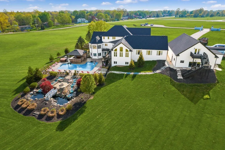 With over 16,000 sf of living space, this magnificent 19.66 acre estate is an entertainers dream! Enjoy the peaceful creek and pond, surrounded by lush wooded areas, and a 6 car garage. Luxuriate in the grand entrance to the 6 bedroom, 6.5 bathroom main house, and the 3 bedroom, 2 bathroom guest house. The Chef's dream gourmet kitchen features a butler's room and a walk-in pantry. The home includes a night club, fitness center, theatre, 12 man steam sauna, great room, and Brazilian Cherry hardwood and Ceramic tile floors throughout. Relax in the gazebo or heated inground pool, and hot tub. With over $600,000 in recent upgrades throughout, this estate is the epitome of luxury living.