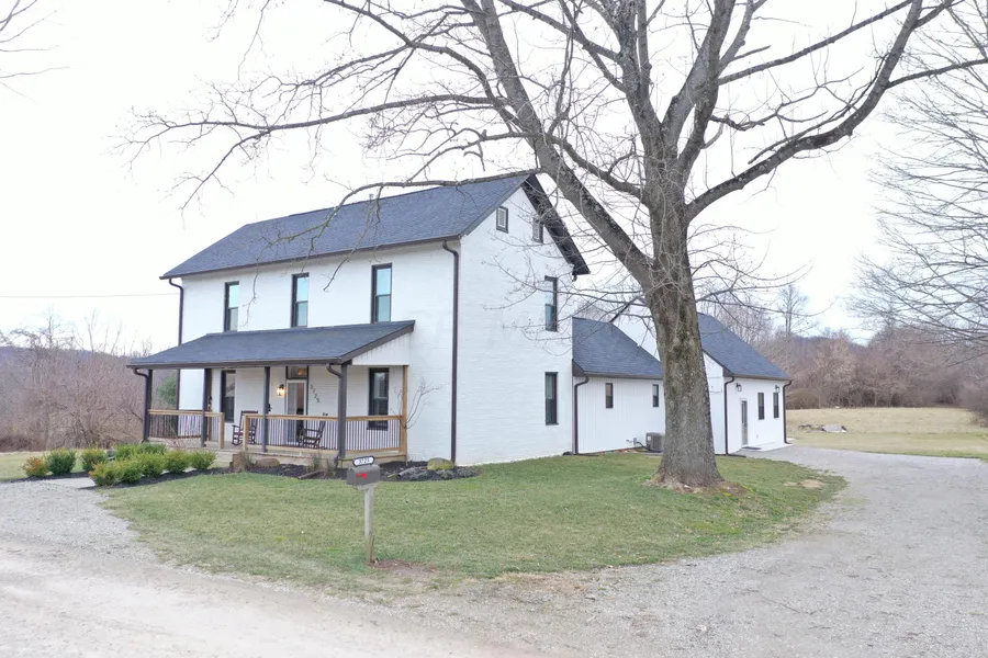 Completely updated 1822 farmhouse on 5 acres! Turn Key, ready to STR! Modern amenities showcased while preserving the rustic charm of the 1800's w/exposed brick and original beams. Owner's suite w/soaking tub & custom closet w/sliding doors to rear yard/deck/hot tub. Gourmet kit. with granite, island, SS appliances, open shelving, decorative touches & first floor laundry. Up the open stairway the Jack & Jill bdrms have their own 1/2 bath while sharing a shower. Decorative fireplaces (exposed 1822 brick), rustic light fixtures, durable vinyl plank flooring throughout. Large Rec Room off kitchen for family gatherings, game night & movie night. Includes sect. couch and oversized bar! Newer mech., Electric, plumbing, roof. Serenity awaits! Within 30 min. of all Hocking Hills has to offer!