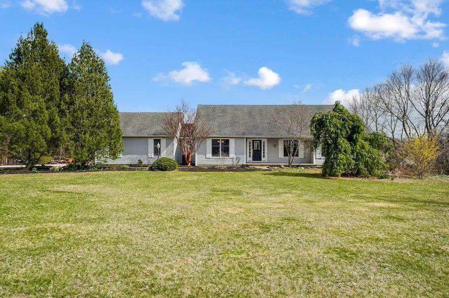 This beautifully kept 4 BR/3.5 BA home sits on 4.93 acres of thoughtfully landscaped grounds, featuring ornamental shrubs, hybrid daylilies, mature trees, and producing blueberry & black raspberry bushes perfect for garden lovers and homesteaders alike. Step into a freshly painted foyer and great room with cathedral ceilings, a wood-burning fireplace, dining area, deck access, and abundant natural light. The eat-in kitchen offers ample cabinetry, a prep sink, and an island for extra workspace. A convenient first-floor laundry room and half bath add function to the layout. The owner's suite includes a walk-in closet and private full bath. The finished walk-out lower level provides a large family room with woodburning stove, 4th bedroom, 3rd full bath, storage, and ample outlets ideal for growing microgreens or seedling starts. Enjoy peaceful sunrises from the deck or lower-level patio. Wi...