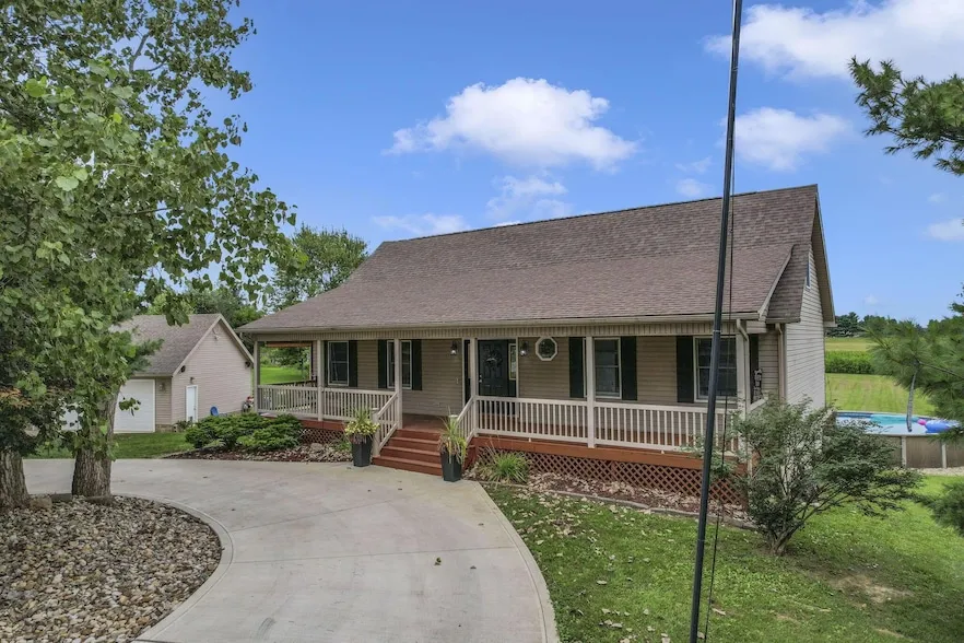 Welcome to 1350 Leonard Rd an extremely well-maintained home situated on 1.66 scenic acres just outside of Baltimore! From the brand-new concrete driveway to the tranquil pond and poolside deck, this property offers comfort, updates, and a beautiful outdoor lifestyle. Enjoy peaceful mornings on the covered front porch with ceiling fans or relax out back on the two-tier deck that leads to the pool an ideal setup for entertaining or quiet evenings. The detached 2-car garage and picturesque backyard with a pond complete this stunning setting. Inside, the first floor features a spacious living room, family room with sliding door to the deck, an eat-in kitchen with stainless steel GE appliances (all just 6 months old), and a convenient half bath. The first-floor primary suite includes an attached full bath with a corner soaking tub and separate shower. Upstairs offers two additional bedrooms and a second full bath. The finished walkout lower level includes a large rec room with access to the patio and backyard, a fourth bedroom, second half bath, and laundry area. Some updates include a new hot water tank (July 2025), all new GE kitchen appliances (February 2025), Samsung washer and dryer (February 2025), Kinetico water softener (February 2025), and a full roof replacement scheduled for August 2025. No detail overlooked!This home has been thoughtfully cared for, inside and out. With plenty of space, recent upgrades, and a truly gorgeous setting!