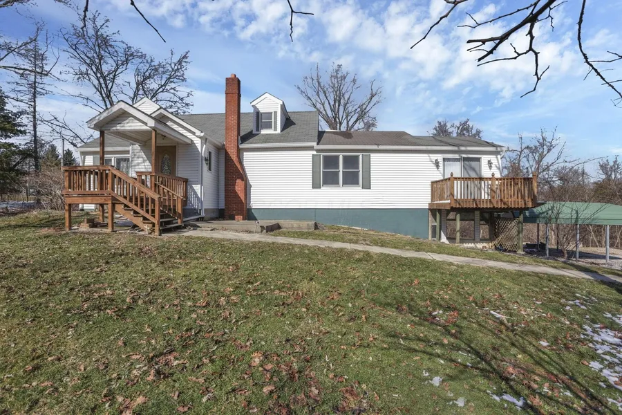 3 BR 2 BA Cape Cod in Fairfield Union School District on 1.01 acres with fenced in yard. This house offers wood floors, formal dining room, large kitchen, 2 entry level bedrooms and a large bedroom upstairs, full bath with walk in shower and entry level laundry with the option of having laundry in the basement. Enjoy the 4-season room with access to a deck on the front and a deck on the back. The full basement offers a finished rec room with plenty of storage space and a work shop off the garage. Washer and dryer convey and the refrigerator and freezer in the basement convey.