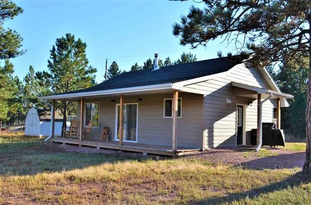 Picturesque, cozy cabin nestled in the pines! This 2015 custom built, efficient home is the perfect retreat you have been looking for with one level living just minutes from town! Open concept kitchen, dining and living area with beautiful stained concrete floors and patio doors to a quaint covered front porch. All appliances stay. Detached 30x32 shop has a 3/4 bath and is fully insulated and heated with radiant tube hear. Overhead door is 10x12. Schedule your showing today.