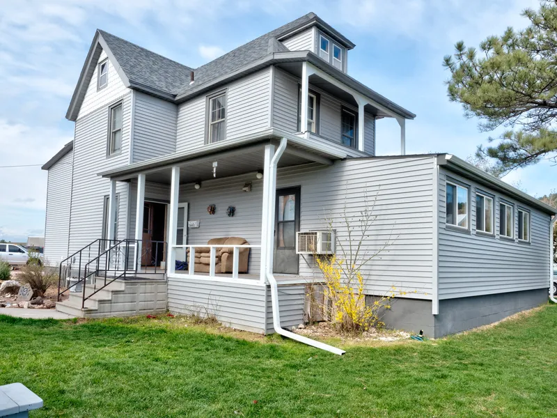 Classic, turn of the century home. 4 bedrooms, 3.5 baths, big shop and storage building(s). Extra rooms include front entry way, back mud room, sitting area between dining and living rooms; upstairs landing area. Home has had over $100,000 in insurance repairs done in 2018 - all new siding, windows, roof, gutters, sheeting and composition shingles, garage doors. Recent interior updates include veneer floor coverings throughout upstairs, new master bedroom carpet. Balcony and sitting room upstairs between two of the bedrooms. Two full baths upstairs. All four bedrooms have walk-in closets. All the rooms are expecially large. Shop has cement floors, heated with wood stove, LED lights, separate electric, 3 phase, all insulated, new roof and sheeting, electric doors. Private well, with new pump and pressure tank, for watering - sprinkler system to grassy area. The heat source can be operated with propane, but current owners have an outdoor, wood stove system that is thermostatically controlled, and feeds right into the duct work throughout the house. The water heater is heated with this system too. It is as easy as flipping a switch to turn it back to propane. This home could easily be operated as a bed and breakfast, with the large bedrooms and number of baths. Besides the 30x40 shop, there is a 14x75 storage unit. This outbuilding has 2 walk-in coolers, with compressors. These have not recently been used, but it is believed they are in working order and ready to go to work for you.