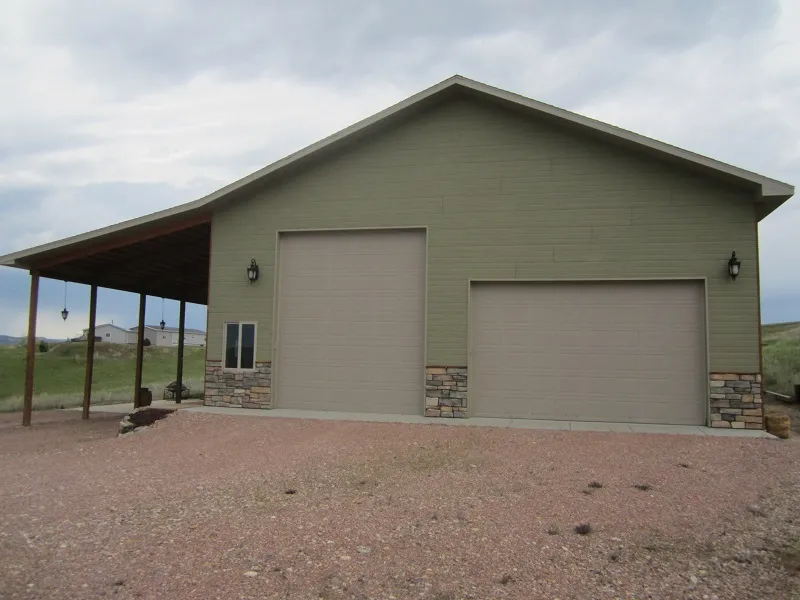 Metal shop with interior living quarters. Main level has garden door entry. Tile floors. Custom sofa with entertainment center and electric fireplace. Knotty pine accents. Track lighting. All lighting is LED. Kitchen has concrete countertop. Kitchen island and seating. Dining area is combined. Stubbed in ice maker with water, drain and outlet. Main floor bath with walk-in shower and washer, dryer. Water softener. Upper level has 3 bedroom. Access door to interior trex upper decking. Sliding barn door in master bedroom. Window treatments stay. In floor heat, zoned with separate controls also has FA heat. Heat on separate rate from lighting through BHE which receives a lower rate. Fire alarms are hard wired with battery backup. Interior of the garage has ample storage. Ovehead doors. Wifi tie in. Parking area for a camper. Water softener spicket. 50 amp and sewer tie in. Exterior has cover...