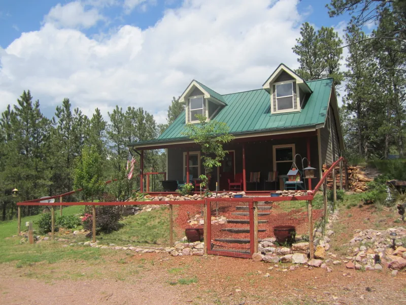 Look no more! This is It! Your cabin in the hills. Comes completely furnished and ready to move in. This 1 1/2 story residence has a covered front deck. Complete with deck chairs and outdoor propane fireplace table. Fended in front yard. Nicely landscaped. Living room, dining and kitchen is open concept. Couch, chairs, hutch, kitchen island and misc. dishes and wall decor. Master bedroom on main level complete with a king size bed. Full bath with heated floor. Loft is complete with lighted stairway and another king size bed and couch and chair. Main floor laundry with new washer and dryer. Has the back door to a concrete patio complete with picnic table and patio furniture. Small storage shed and bench at the top of the hill. 2 propane grills. There is a carport in front and another storage building. Located within 2 miles of Hot Springs in the beautiful subdivision of Cobblestone Mountain Estates. Strawberry patch, cherry, apple and peach trees. Choke cherry bush and rhubarb. Rural water and road district. This is quite a gem to find in the black hills. Perfect for that 2nd home getaway or full-time residence.