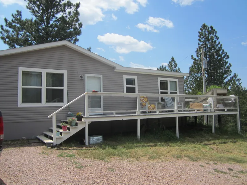 Manufactured home on permanent foundation. 5 acres of beautiful black hills land. No covenants! Private well. Close to Hot Springs. All one level convenient living. Wood stove in living room. Kitchen and dining room combination. Master bedroom with master bath and walk in closet. Deck on 2 sides. Detached oversize single car garage. Outside water hydrant. Storage shed. Views in all directions. You will enjoy sitting on the deck and admiring your surroundings! Plenty of room to add a shop or additional outbuilding to accommodate your lifestyle pleasure.