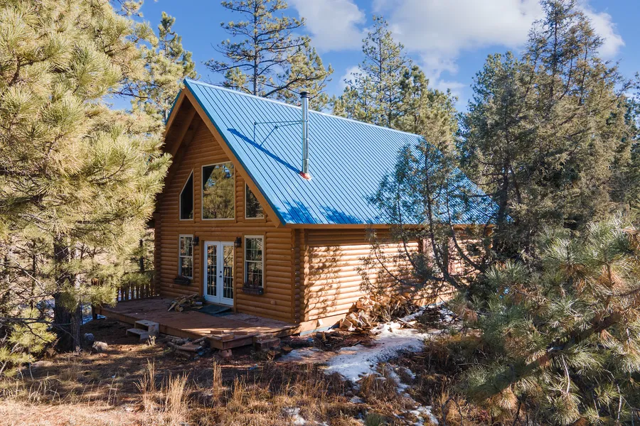 Here is your cabin in the hills! Located within minutes to Hot Springs. Custom built log cabin on wooded lot. One owner home built in 2008. Mahogany floors and tiled kitchen floor and entry. Tiled counter tops. Garden doors to covered front deck with privacy and views. Several heat sources. Heat pump and central a/c plus a wood stove in the living room and a free-standing gas stove in the kitchen. Loft with upstairs French doors to the balcony. Stair lift if needed. Main floor laundry and storage room. RV hook up to septic, electric and water. Rural water services the property. Two garden sheds and one is finished for office/library with a/c, heater and electric. Two car open faced carport. Back entry deck, propane tank owned. Metal roofs. This property is great for a second home and get away in the hills or full-time residence. Surrounded by nature and nestled in the pines.