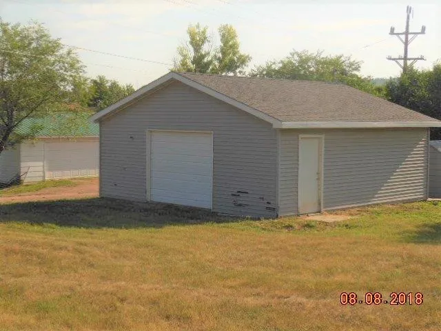 Great location, corner lot with a 24x24 garage, which has been used for storage only. There is a 16x20 concrete slab behind the garage, with an electrical hook-up for a motor home or travel trailer. Vinyl siding, composition roofing, walk-in entrance, plus a 7'x9' overhead garage door.