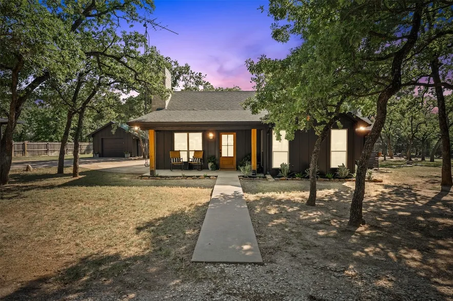 Welcome to your private escape tucked away in the trees! Nestled at the end of a quiet cul-de-sac and surrounded by mature trees on 5 acres, this beautifully updated 2-bedroom, 1.5-bath home offers the perfect blend of rustic charm and modern convenience. With 1,360 sq ft of living space plus a flexible bonus room, there s room to relax, work, or play. Inside, enjoy fresh interior paint, commercial-grade Lake Worth Oak vinyl plank flooring throughout, and a warm, inviting living room with a beautiful bold stone fireplace and hearth. The kitchen boasts quartz countertops, a matching quartz backsplash, painted cabinetry, a pot filler, and all-new appliances (2023). The primary bedroom features a redesigned walk-in closet with built-in shelving and dresser space, while both bathrooms have been refreshed with granite counters and updated fixtures. The additional flex room offers the perfect spot for an office, gym, or guest overflow. Outside, the property shines withA fully insulated one-car garage with updated electrical, multiple plugs, and its own air compressor. A large spray-foam insulated shop with 3 roll-up doors, air compressor, 120V-220V outlets, and entertainment plugs. Dedicated RV parking and a covered carport. Multiple small shops on property for additional storage. Amazing lighting throughout property & Stone walkways. Entertain, relax and unwind on the new stone sitting area or by the fire pit under string lights. Upgrades continue with new exterior doors, LED lighting throughout, updated electrical, and a septic system with recent pump and aerator replacements. This one checks all the boxes for peaceful country living with stylish modern updates.