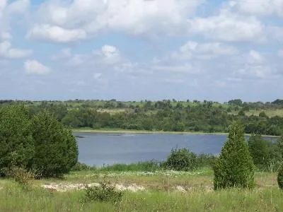 45.8 acres with rolling hills, views, frontage and use of private lake, fishing cabin, well, perimeter fenced, and a short drive east of Eddy and IH-35 on paved County Road 435.
