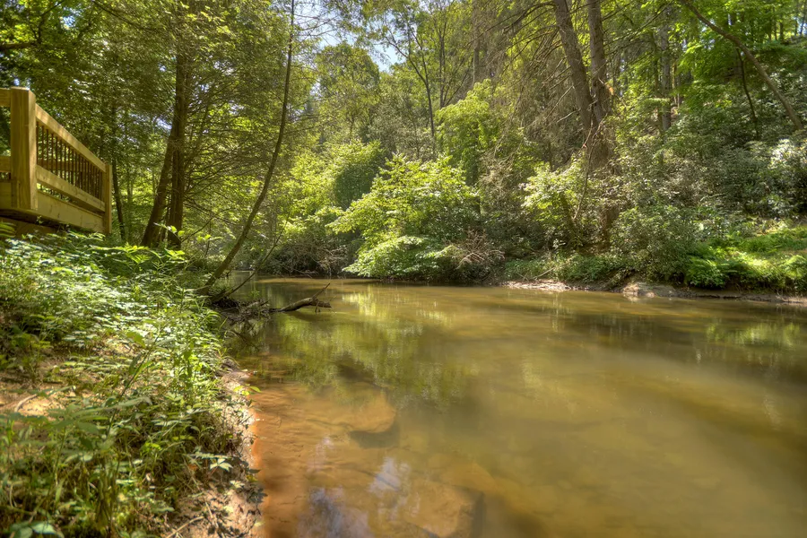 2/2 with 150' frontage on Fightingtown Creek! Beautiful inside and out! Selling Turnkey! And only 7 miles to Blue Ridge. Recently remodeled, the interior is stunning. Gorgeous, modern, and functional kitchen, attached to Great Room with fireplace and dining area. Master on main with private screened in sitting porch than opens to large outdoor deck. Separate large master bath with beautiful tile and glass large shower. Loft bedroom has built-in bunks, a double and a separate twin and attached large bath with large walk-in tiled shower. Outdoor deck has new, large fireplace and plenty of room for the gang to gather. Steps lead down to the hot tub on concrete pad. Large sitting deck on creek side edge. Catch your trout dinner from your backyard. Grounds are well-kept, manicured, and low maintenance. This is a rare find. RENTAL HISTORY available upon request.