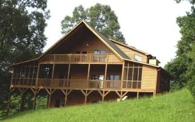 Get away from it all. Nesteled in a beautiful mountain setting is this log cabin overlooking the gorgeous mountains. This family perfect cabin offers 2 bedrooms, cathedral ceiling, hardwood floors, stacked stone fireplace in the great room, and another on the screened in porch, and a garage. Cheryy cabinets, granite counter tops, huge master bedroom with private deck overlooking the mountains. A 2nd screened in porch with a hot tub. Daylight basement. All this in a beautiful area of the country.