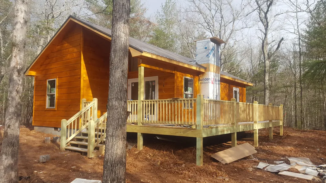 2 BEDROOM, 2 BATH CABIN with hickory hardwood floors, pine tongue & groove throughout, sawmill rustic cabinets & granite countertops, gas fireplace, with accent wall in the living room. Paved road frontage for easy access & much more!