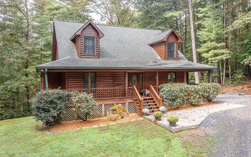 Perfect unique rental opportunity! From the moment you drive by the quaint farm and pastures, up the way to the circular drive of this home, you ll be transported back to the peace and tranquility of the mountains. This beautiful 4 bedroom, 3 bath cabin sits on 3 acres of unrestricted land. The main level includes a bright open foyer which leads to a stunning living room with tongue and groove and a floor to ceiling stacked stone fireplace with plenty of windows. The owner s suite (with jetted tub, walk-in closet, and plenty of space), dining room, kitchen, laundry room, and powder room are also on the main level. Beautiful hardwood floors provide a comfortable cozy feel throughout. From the foyer, the wooden staircase includes custom accents and leads to the upper level. Nice sized bedrooms are located on either side of the open hallway with a full bath. You won t believe all of the additional space in the finished terrace level.